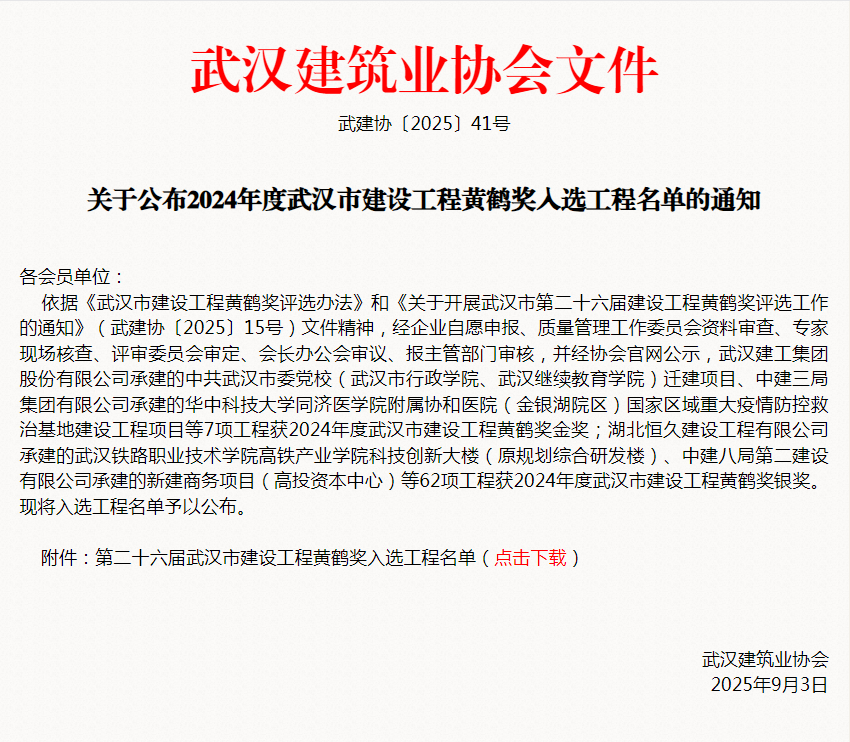 • 再添8項!湖北省建工第五建設有限公司榮譽持續刷新